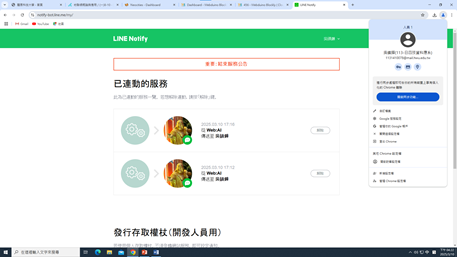 三、依本周場景說明,將執行結果:紅燈、藍燈、LINE 傳遞通知